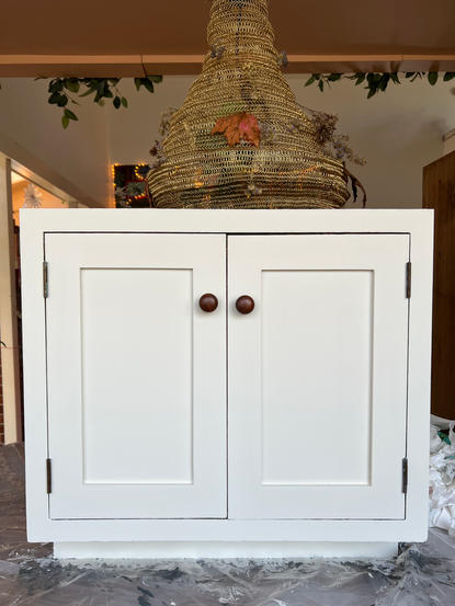 The sink came with gorgeous custom base cabinets too, which I painted Schoolhouse White by Farrow and Ball. They were already painted but the paint job was scratched up so I primed first.