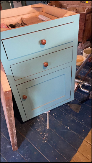 -I have to figure out a cabinet to put in the corner by the stove but I have to wait until the stove and sink are in place for exact measurements.